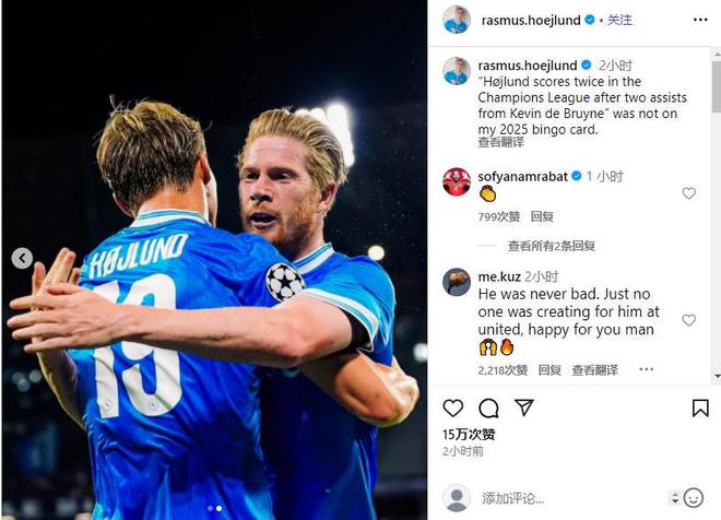 霍伊伦:德布劳内助攻我上演梅开二度,这剧情我完全没想到